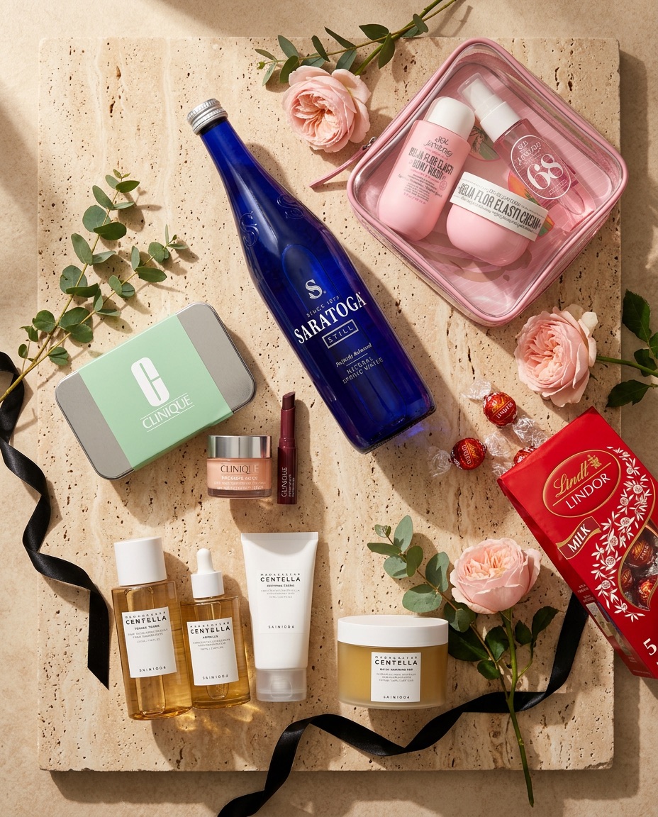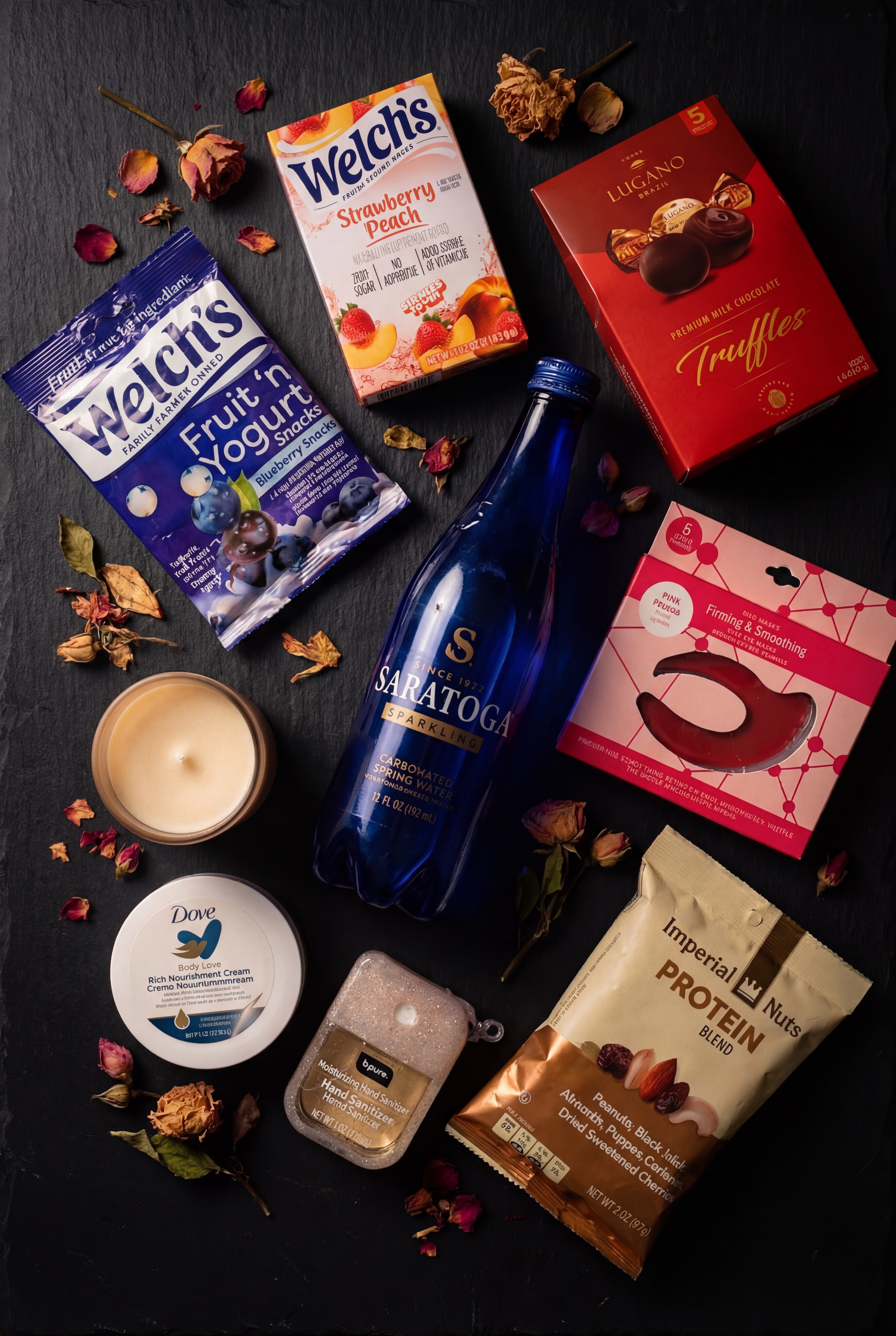 • Curated goodies — treats, candle, self-care items