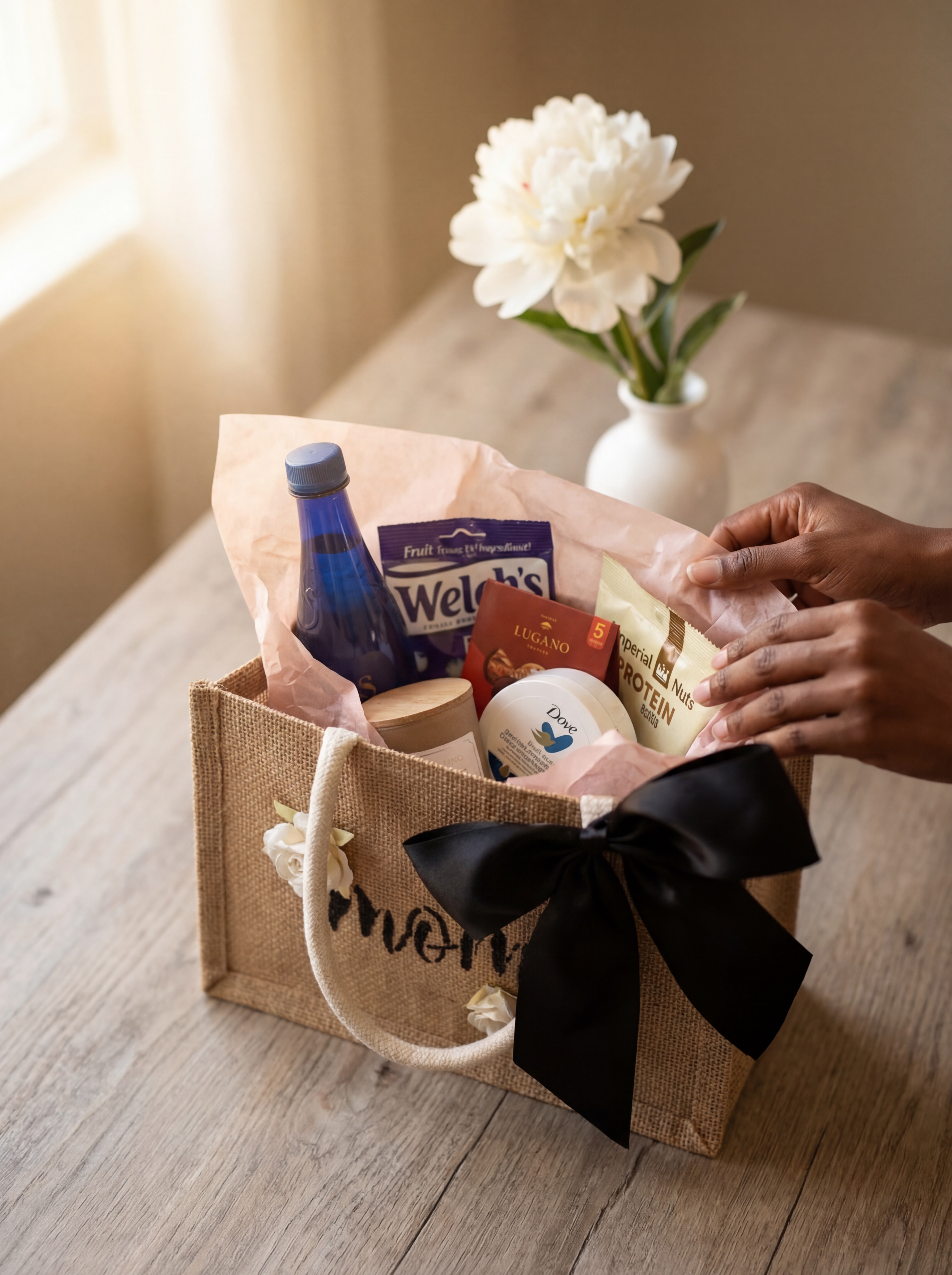 Every tote we create is handcrafted and curated with intention. We choose each item, each detail, each finishing touch so that when she opens it, she doesn't just see a gift — she feels the thought behind it.